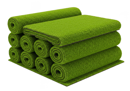 Rolls of green artificial turf on transparent background