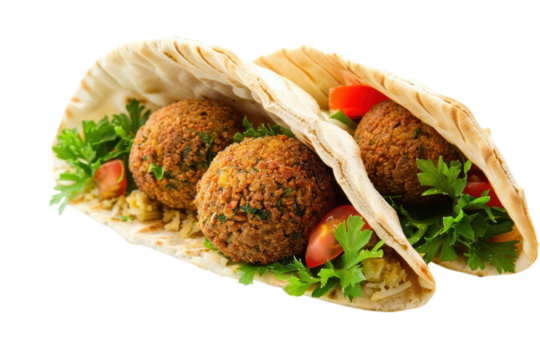 Delicious falafel wrap with fresh vegetables transparent background cutout png