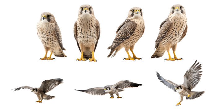 Brown falcon bird standing profile view isolated on a transparent background raptor