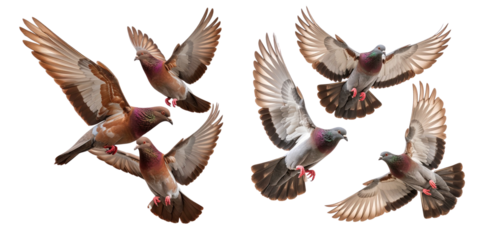 Three Brown Pigeons in Flight with Wings Spread, Isolated on Transparent Background PNG