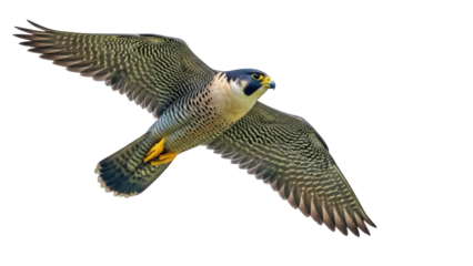 Peregrine falcon in flight nature scene wildlife airborne view, isolated on transparent background, png