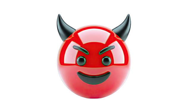 3D Red Devil Emoji with Black Horns