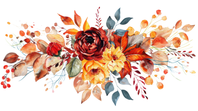 Autumn Flower and Leaves Watercolor