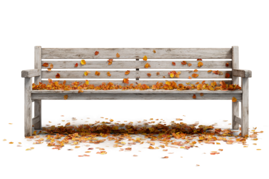Autumn park bench with fallen leaves isolated on transparent background