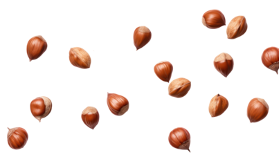 Falling hazelnuts on transparent background