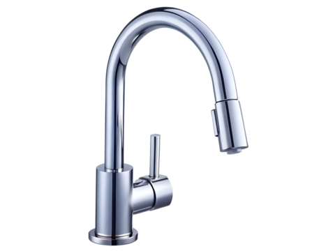 A modern chrome kitchen faucet with a pullout spray isolated on transparent background