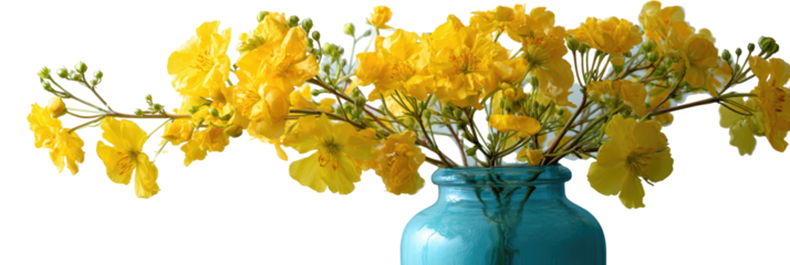 Stylized teal flowers with coral stamens on transparent background
