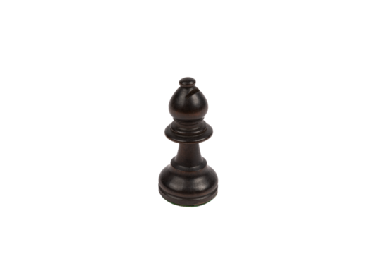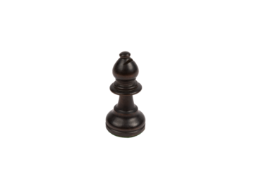 Black wooden bishop chess piece on transparent background