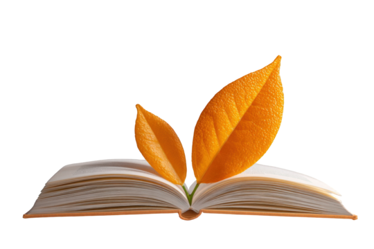 watercolor illustration of books and autumn leaves isolated on a transparent background