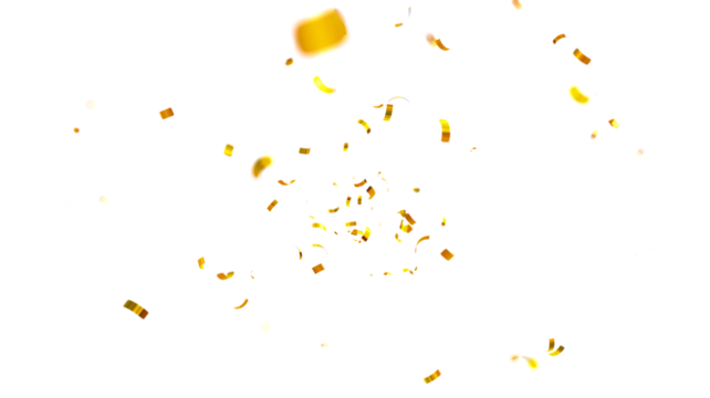 Golden confetti falling down isolated on transparent.