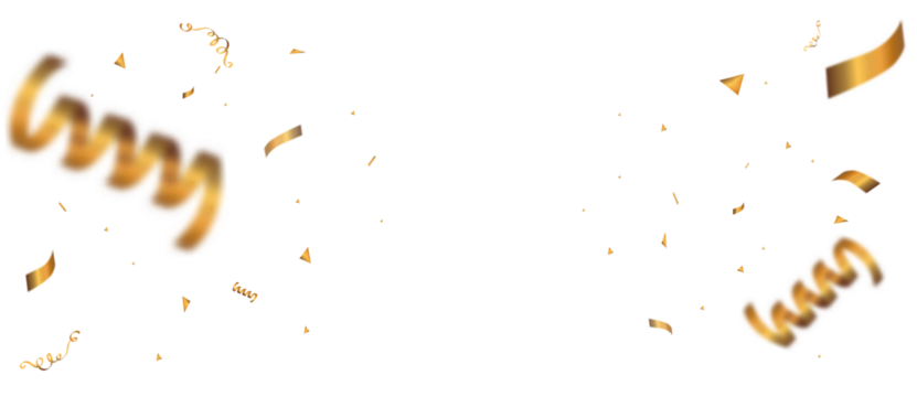 Sparkling gold glitter and confetti falling against a black background, creating a festive and luxurious atmosphere.
