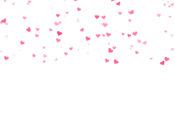 Scattered blue and pink hearts on transparent background