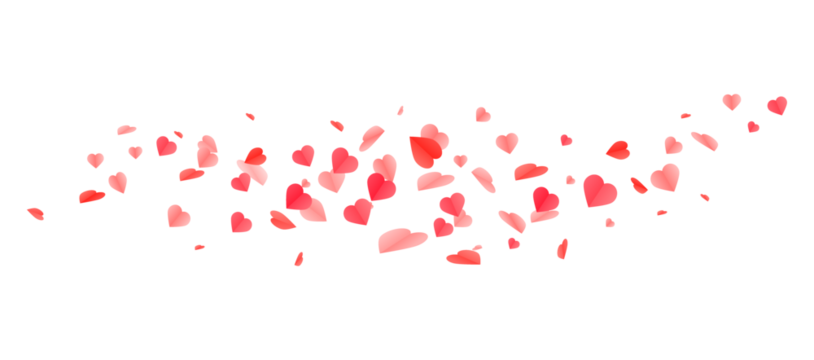 Falling red hearts cascade on transparent background