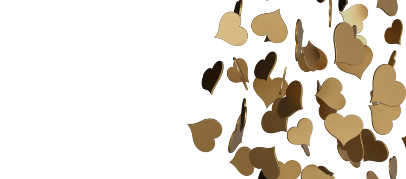 hearts on a transparent background. 3D rendering. for valentine's day and wedding. PNG Rain from hearts.