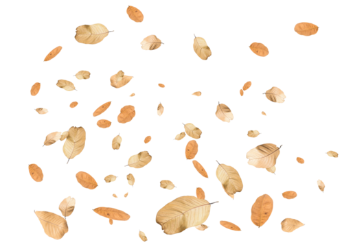 A collection of dried, dry autumn tree leaves isolated on a flat background for autumn designs.