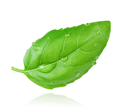 Fresh green organic basil leaves flying, isolated on white, transparent background. Creative food levitation, wide banner with copy space, header, backdrop. Ingredient, cooking spice, healthy food.