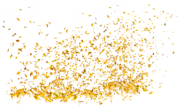 Autumn falling leaves on transparent background, vector, png. Wave of falling leaves in the wind, leaf fall. Rowan berries, acorns, yellow leaves of oak, maple, birch, rowan.