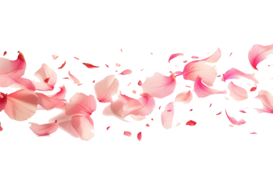 Explosion of pink flower petals isolated transparent background