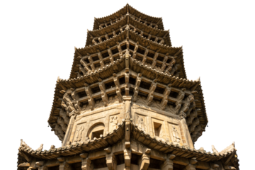 The "Zhenguo" ancient stone tower at Kaiyuan temple, Quanzhou, Fujian, China. Isolated on white background.