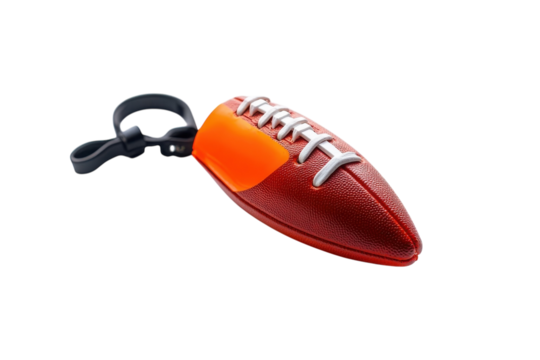 A vibrant keychain shaped like a football showcasing playful design and bright colors against white isolated on transparent background