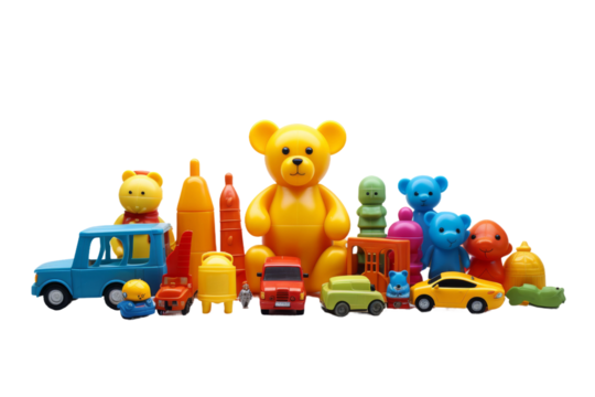 A Parade of Teddy Bears on a White or Clear Surface PNG Transparent Background.