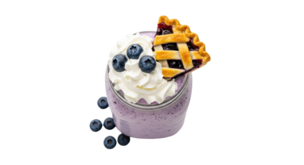 Colorful dessert milkshake with creamy toppings, vibrant flavors, and a splash effect, isolated on a white background.