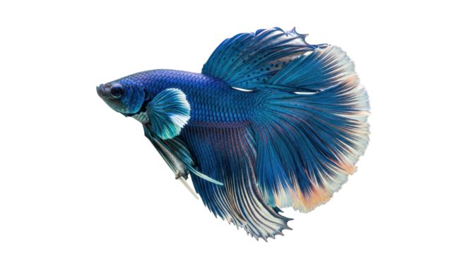 Vibrant red betta fish with flowing fins isolated on transparent background. Red betta fish with flowing fins isolated on white background.