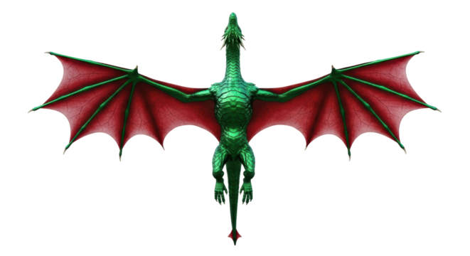 Isolated Red Dragon with Spread Wings in Flight Fantasy Creature on No Background, Mythical