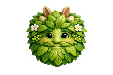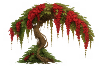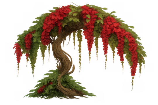 Fantasy tree with red flowers and green leaves, a whimsical botanical element on transparent background