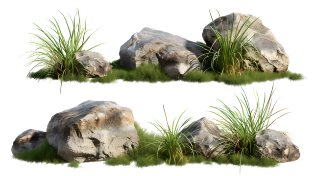 Floating island of green grass with transparent background