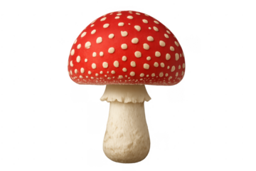 A vibrant mushroom featuring a red cap adorned with white dots, isolated on transparent background