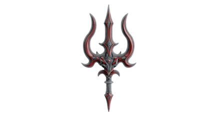 Devil trident red fork weapon fantasy evil prop halloween costume element mythological spear isolated on white background