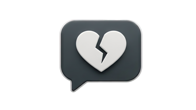 3D Broken Heart Chat Bubble Icon on transparent background