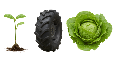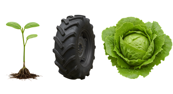 FARMING - Green tractor with large growing plant on white background, agricultural farming and environmental growth concept