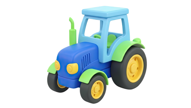 Stylized green tractor toy model agriculture vehicle design farm equipment farming concept minimalist design3d illustration isolated on transparent background