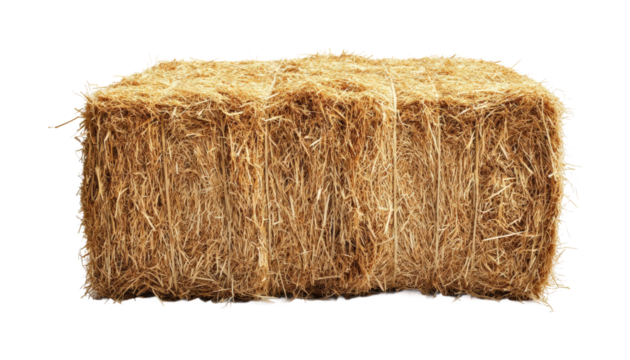 Straw bales stacked neatly in a rustic farmyard under the bright afternoon sun creating a serene rural atmosphere isolated on transparent background