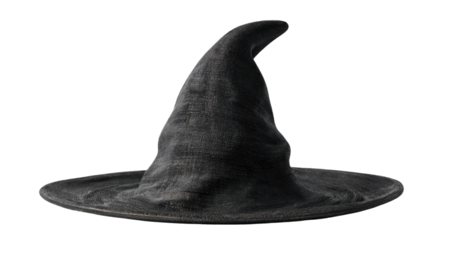 A black witch hat accessory isolated on a white background is a classic Halloween fashion object