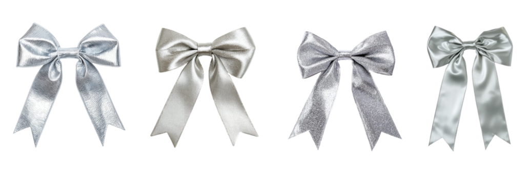 Collection of silver bows with different textures and styles