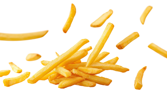 French fries or potato fries with salt taste isolated on background, fast food with high calories, popular appetizer or snack.