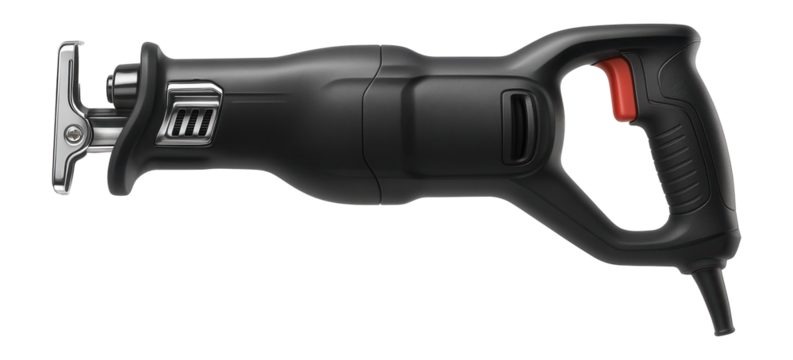 Lightweight reciprocating saw with a long stroke length for faster cutting of wooden pallets in a recycling plant.