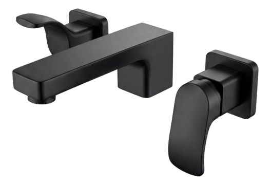 Matte black shower faucet with a sleek design and dual handles for modern homes.
