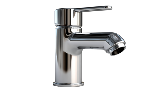 Modern chrome single lever basin faucet isolated on transparent background