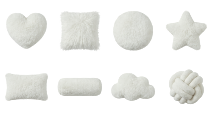 Cozy white tufted armchair with green pillow and sheepskin throw isolated on transparent background