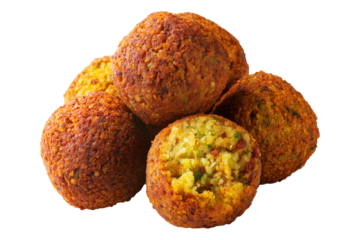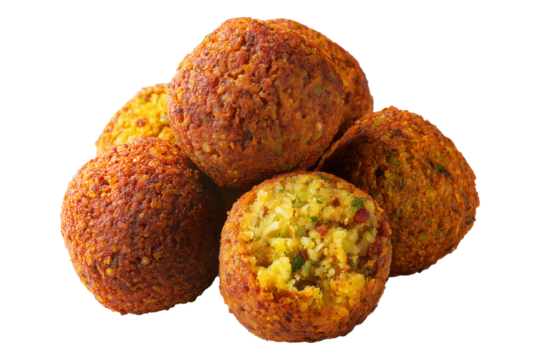 Crispy falafel balls stacked in a pile chickpea fava bean fritte, isolated on white transparent background, concept of traditional Arabic food