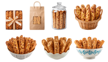 Blue and white striped party favor ball with confetti and ribbons isolated on transparent background