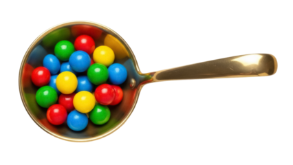 Isolated Golden Spoon with Colorful Gumballs, Candy for Dessert, Treat, or Party Favors