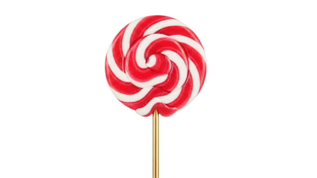 Red and white striped lollipop PNG isolated on transparent background, sweet candy treat for kids and party favors