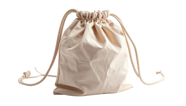 Beige Cotton Drawstring Bag Isolated On Transparent Background For Gifts Favors Jewelry And Small Items Packaging And Storage Needs