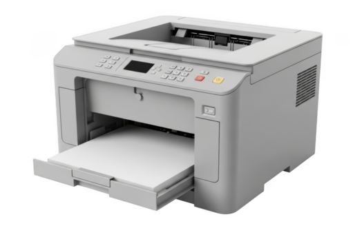 Smart Office Printer with Paper Tray – Angled Isolated Transparent Background PNG