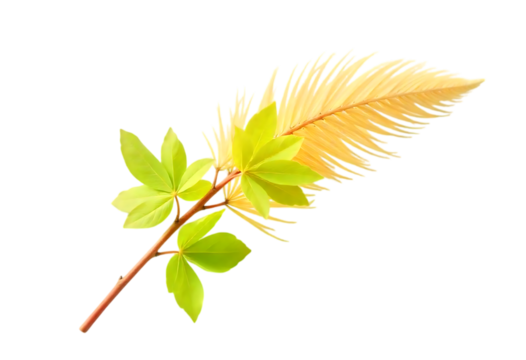 Elegant Yellow Feather and Green Leaves Branch Nature's Delicate Beauty